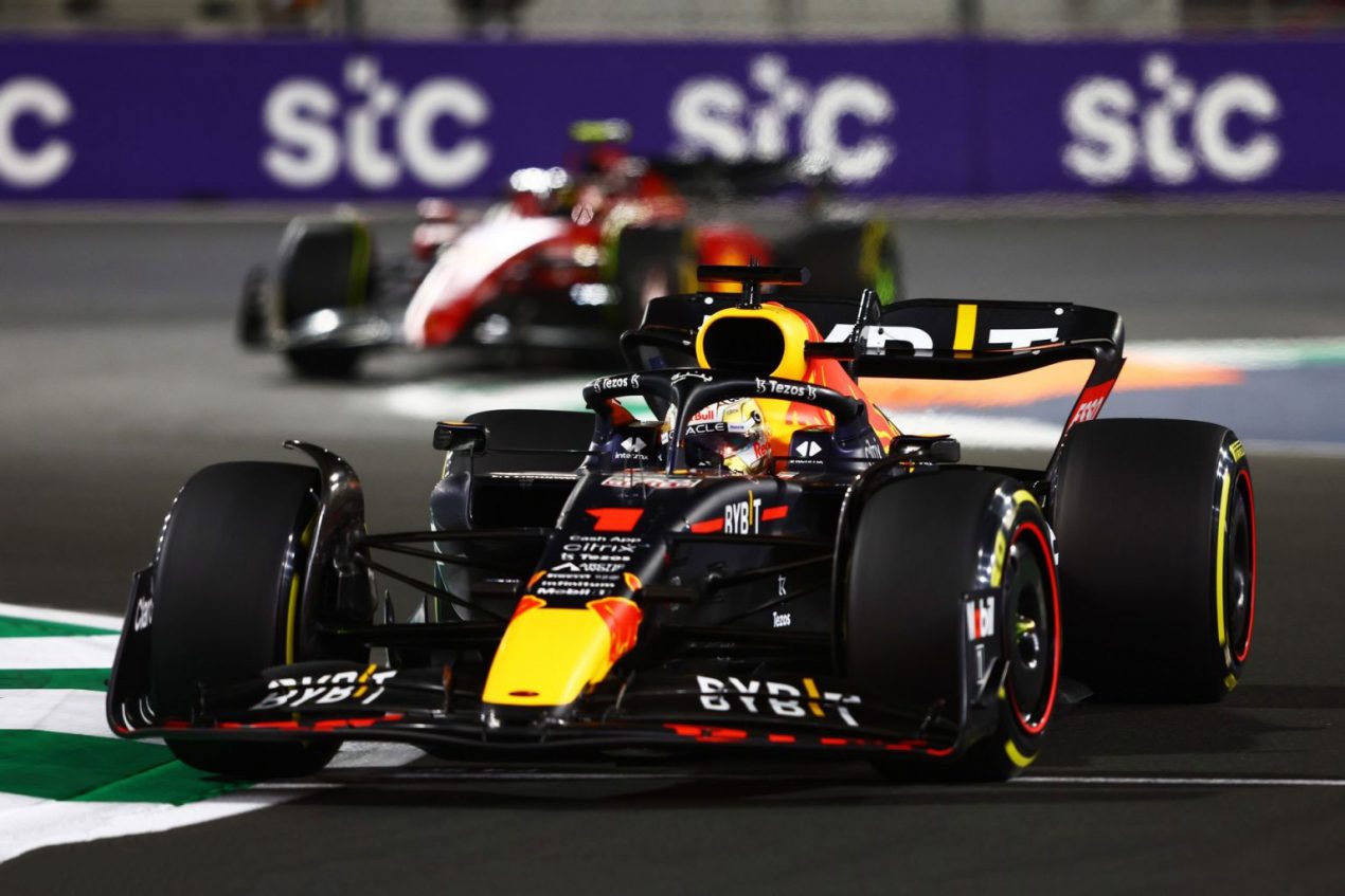 _ _ FÓRMULA 1 GP DE ARBIA SAUDITA 2022 PARRILLA DE LARGADA EN YEDA FILA 1 1. Sergio Pérez 1m 28.200 Red Bull 2. Charles Leclerc 1m 28.225 Ferrari FILA 2 3. Carlos Sainz 1m 28.402 Ferrari 4. Max Verstappen 1m 28.461 Red Bull FILA 3 5. Esteban Ocon 1m 29.068 Alpine 6.