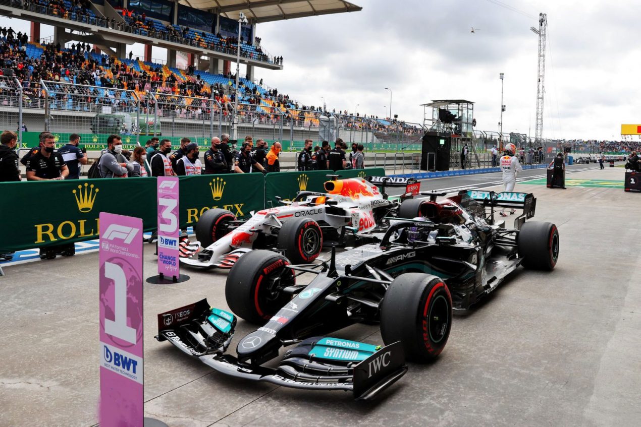 _ _ FÓRMULA UNO GP DE TURQUÍA 2021 M A N O I N T E R M E D I A LAS DEFINICIONES SIN P R O B L E M A Para los Mercedes Ni para Verstappen, que vuelven a dominar, siendo los tres más rápidos. La pista ya se puso amable