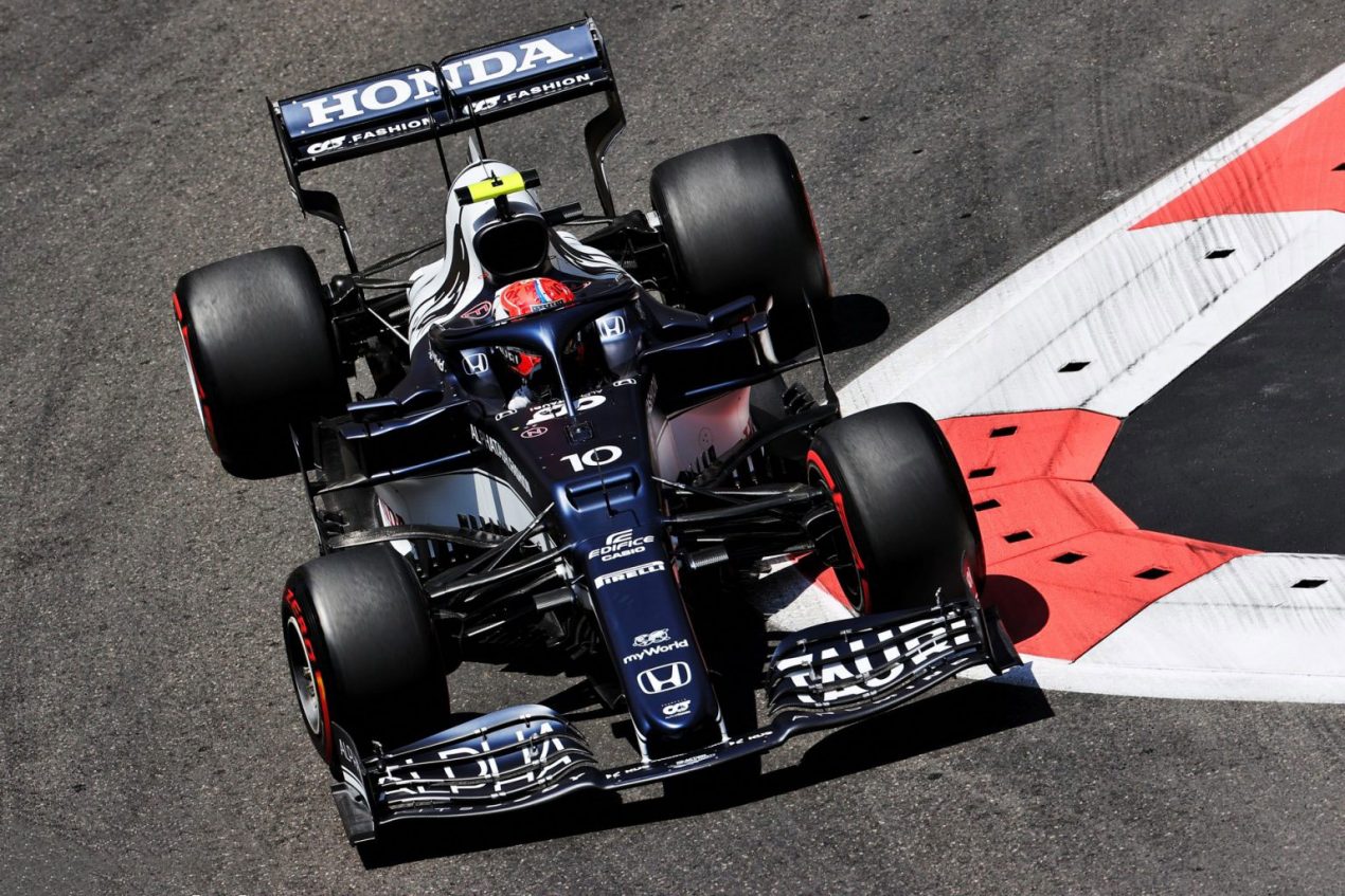 _ _ FÓRMULA UNO GP DE AZERBAIYÁN 2021 3ª _P R Á C T I C A L I B R E NOVEDAD G A S L Y Los sorprende Montado en su Alpha Tauri el francés se queda con lo mejor de esta sesión. En tanto que Verstappen choca contra una valla. Sergio Pérez