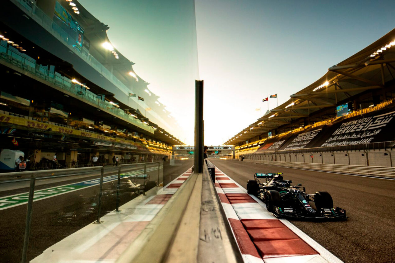 _ _ _ FÓRMULA UNO GP DE ABU DABI 2020 2ª _P R Á C T I C A L I B R E SE DESQUITAN LOS DE MERCEDES Marcan el «uno-dos» Bottas primero y Hamilton segundo. Con Verstappen, el eterno perseguidor y Albon, pegadito. Ocon es sexto, detrás de Norris y su McLaren.