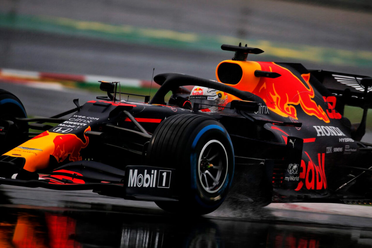 _ _ _ FÓRMULA UNO GP DE TURQUÍA 2020 3ª _P R Á C T I C A L I B R E CON BROCHE DE ORO VERSTAPPEN Las tres veces, el mejor La lluvia impide una práctica como las normales, el piso tal cual superficie de hielo. Luego de Max: Leclerc y Albon.