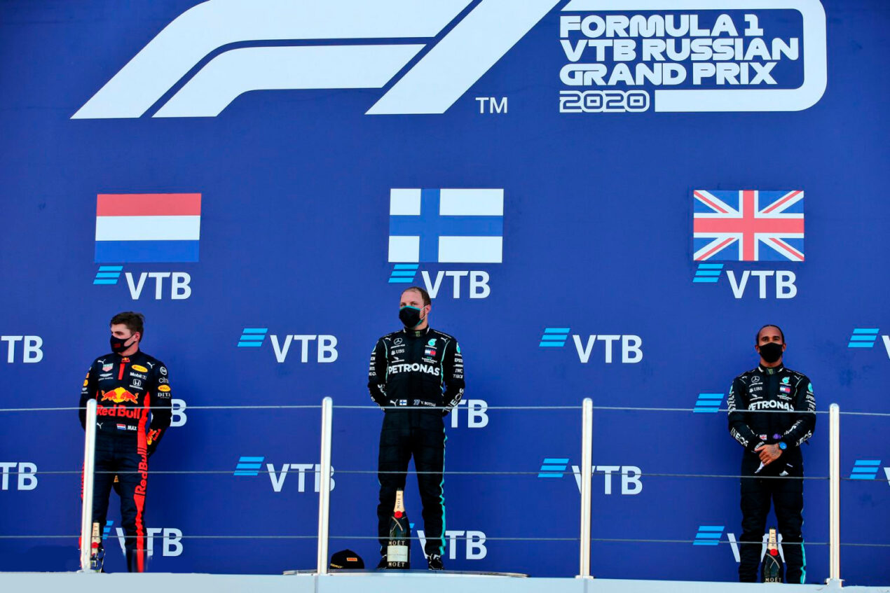 _ FÓRMULA 1 GP DE RUSIA DE 2020 R A C I N G MUY OPORTUNO TRIUNFO DE VALTTERI BOTTAS Con una carrera impecable Cargando a su equipo Mercedes en los hombros. Verstappen termina segundo. Luego, Hamilton. Con S. Pérez colocado como el cuarto; enseguida Ricciardo. Decepciona Sainz por su accidente