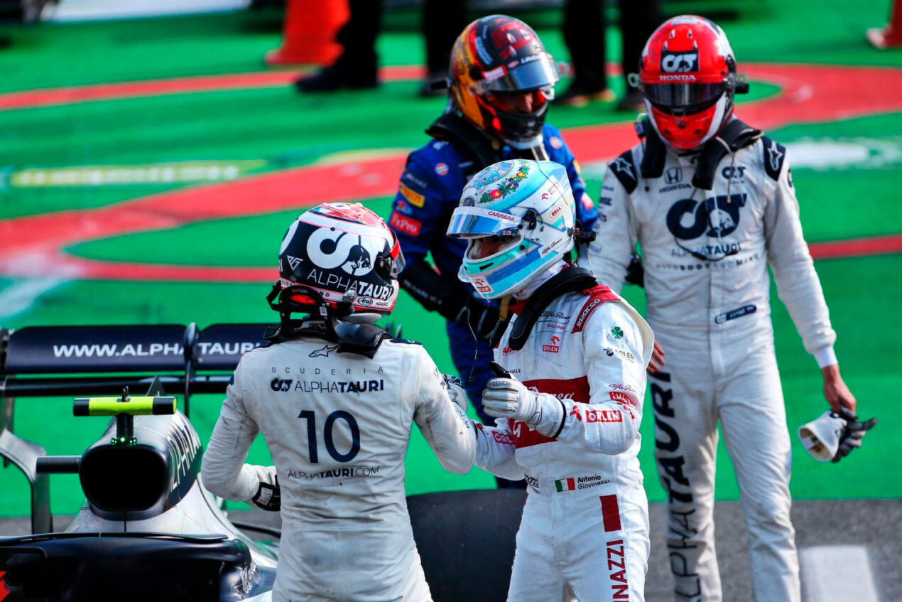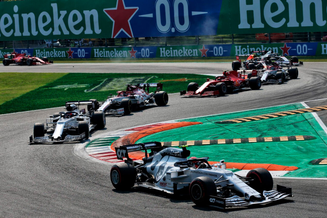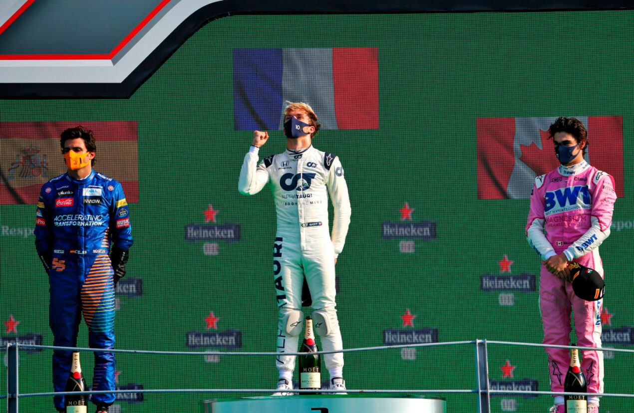 _ FÓRMULA 1 GP DE ITALIA DE 2020 R A C I N G PODIO NUEVO VIDA NUEVA Gasly, Sainz y Stroll de estreno Carrera llena de sobresaltos que posibilita la entrada de este aire fresco. Hamilton penalizado, queda sexto. Bottas no anda y Verstappen abandona. Todo se conjura para ver