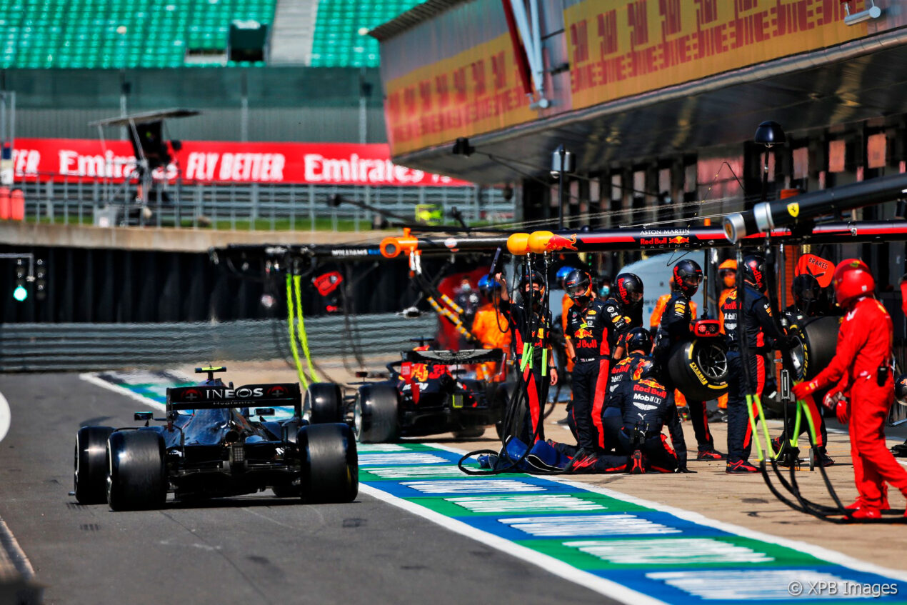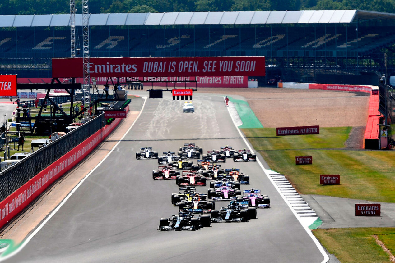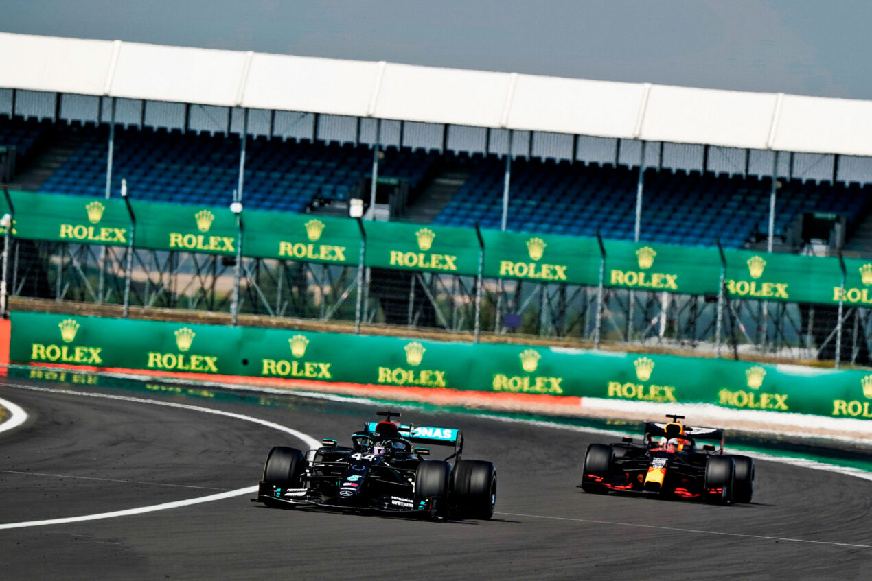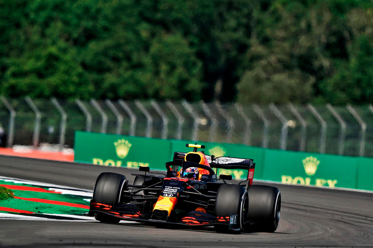 _ FÓRMULA UNO GP DEL 70º ANIVERSARIO 2020 L O __A C O N T E C I D O FENOMENAL MANEJO Y ATINADA ESTRATEGIA En la clamorosa victoria de Verstappen Primera vez en la temporada cae derrotado el equipo campeón. Max no ganaba desde el GP de Brasil de 2019. Fue