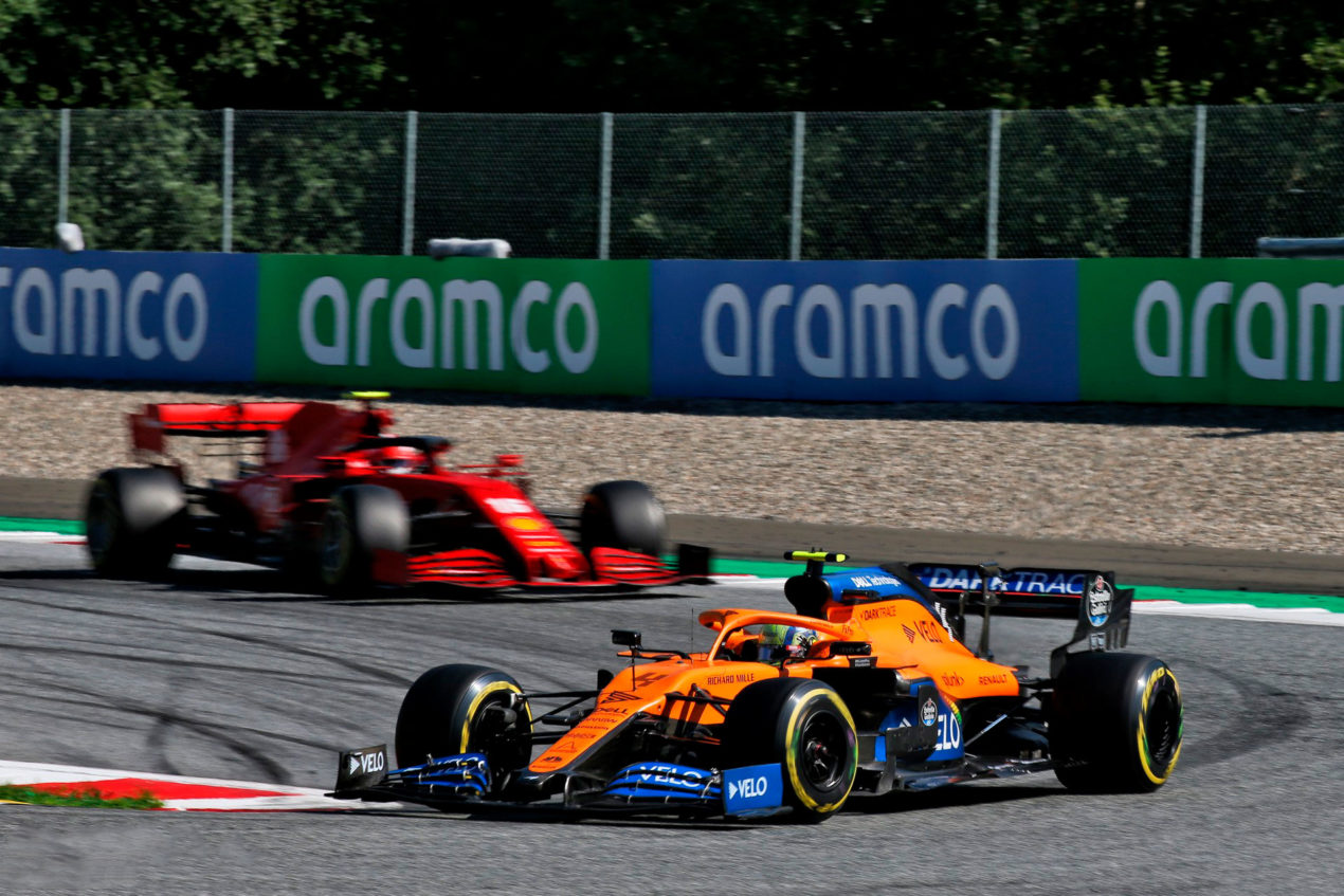 FÓRMULA UNO GP DE AUSTRIA 2020 CADA PILOTO, MARCA UN GIRO MEJOR RANK # NAC PILOTO EQUIPO U DE POT LAPS CRONO DÉFICIT INT KPH 1º 4 Lando Norris McLaren Renault 71 1m 07.475 — — 230.378 2º 77 Valtteri Bottas Mercedes Mercedes 68 1m 07.657 +0.182 +0.182 229.758 3º 44 Lewis Hamilton Mercedes