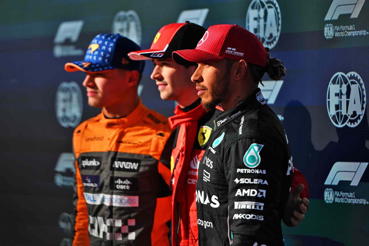 _ _ FÓRMULA UNO QUALYS PARA EL GP DE LOS EUA 2023 1ª M A N G A HAMILTON Y NORRIS L O S M E J O R E S Con Verstappen detrás Intercambiando el protagonismo y hasta con Hulkenberg de Haas que apareció como el primero por un instante. S. Pérez