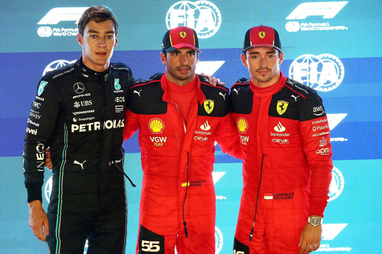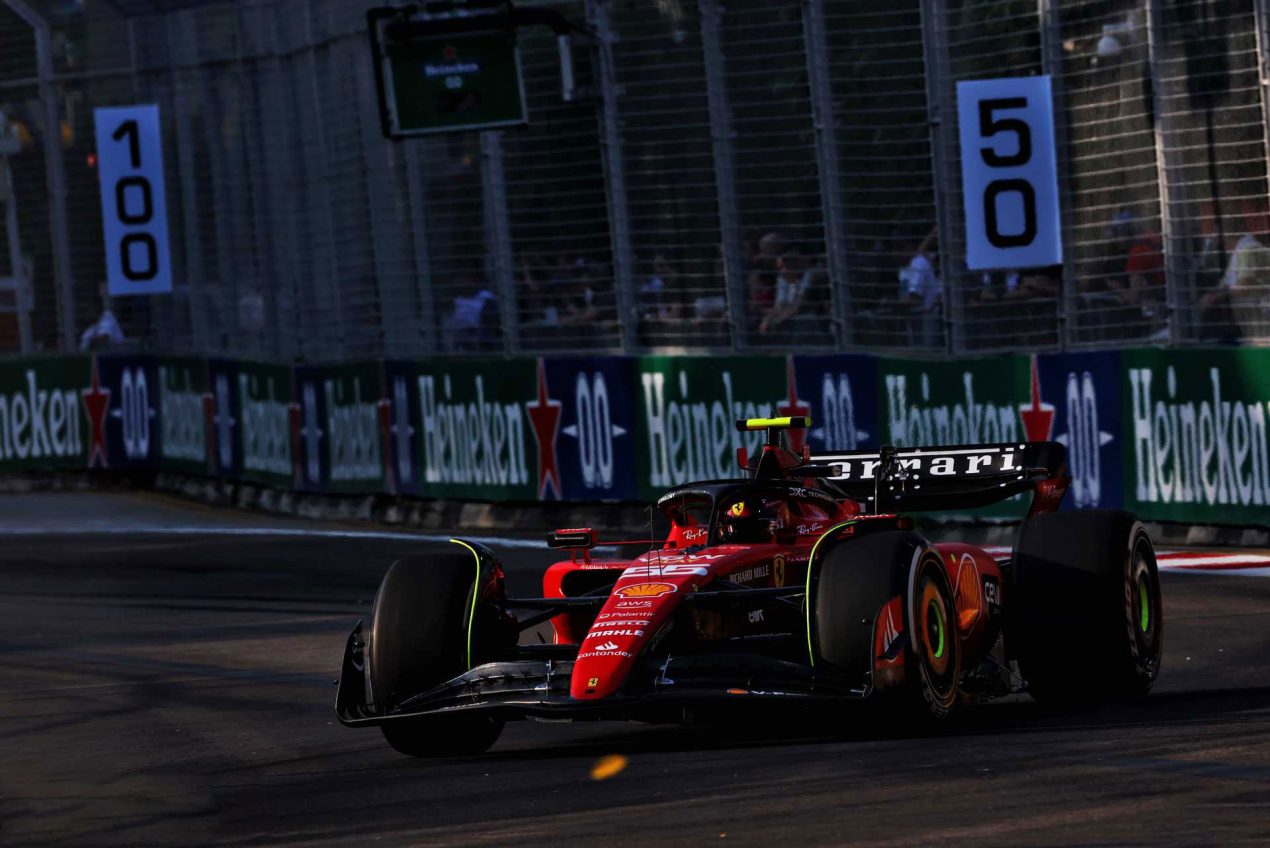 _ _ Fórmula 1 GP DE SINGAPUR 2023 T E R C E R A P R Á C T I C A L I B R E AHORA SÍ. IMPECABLE F E R R A R I En los entrenamientos Con Sainz que repite como el más rápido. Russell de Mercedes y