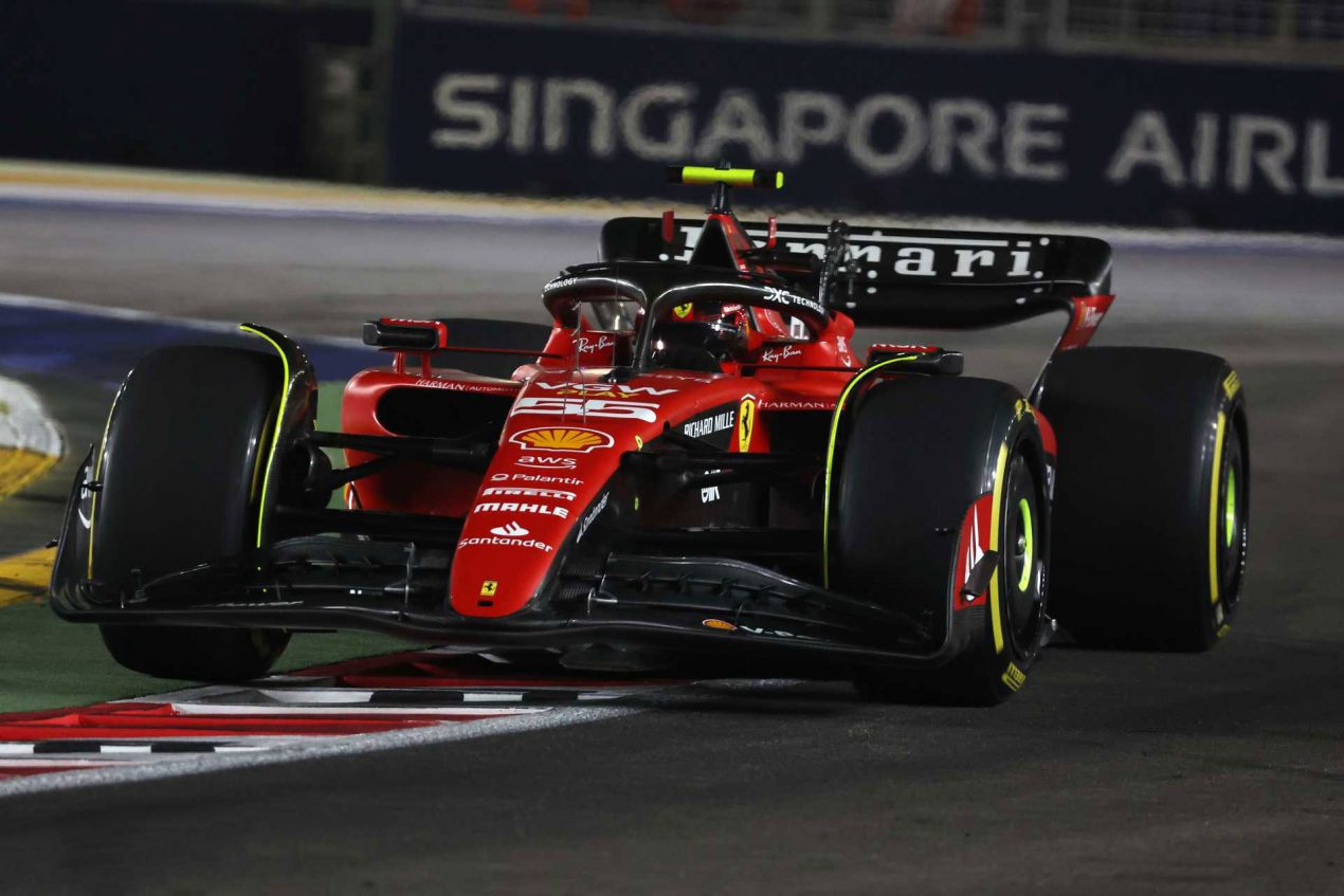 _ _ Fórmula 1 GP DE SINGAPUR 2023 P R I M E R A P R Á C T I C A L I B R E CONTACTO INICIAL FAVORECE A L E C L E R C Con su Ferrari rojo Sainz con toda corrección remata el «uno-dos» italiano. Verstappen tercero;