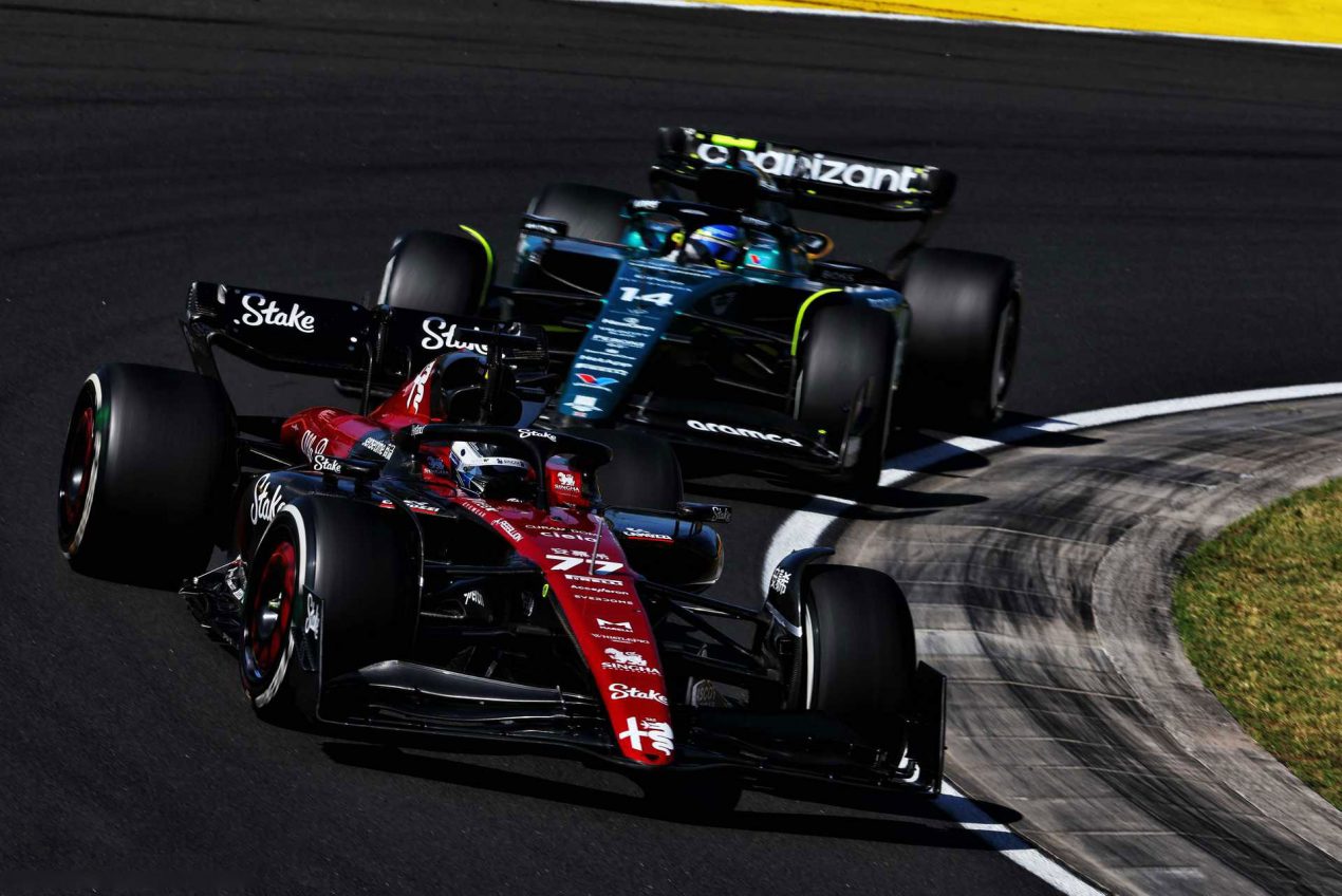 _ _ FÓRMULA UNO GP DE HUNGRÍA 2023 1ª M A N G A Algo increíble, un A L F A R O M E O Con el chino Guanyu Al volante, marcando el crono de referencia para dejar asombrado a medio mundo, en particular, a Mercedes que no supera el corte con un auto: