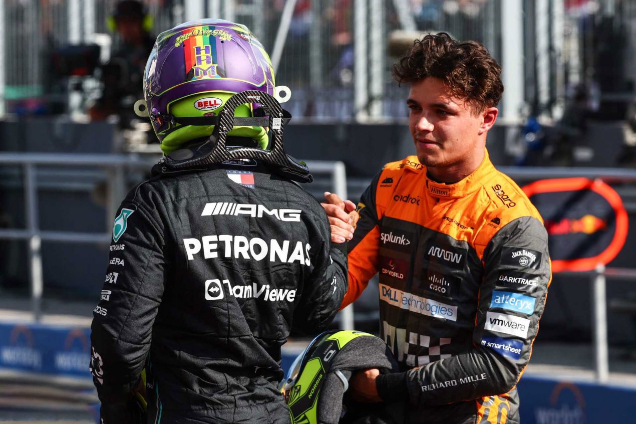 _ _ FÓRMULA UNO GP DE HUNGRÍA 2023 M A N G A I N T E R M E D I A LANDO NORRIS DE M c L A R E N El más cumplido Con Hamilton, Verstappen y Bottas encendidos en la persecución. Muy interesante manejo de Piastri en el otro coche de