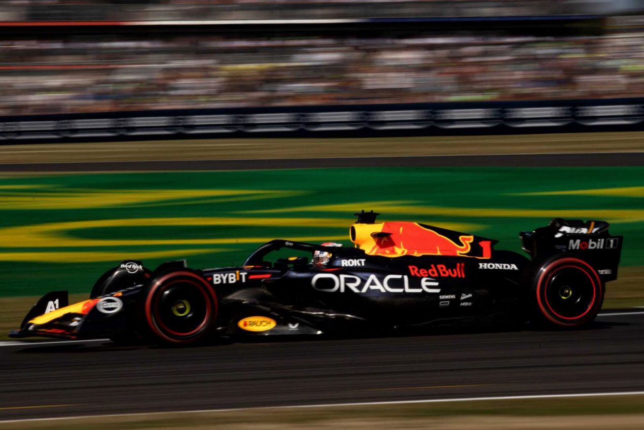 _ _ Fórmula 1 GP DE INGLATERRA 2023 P R I M E R A P R Á C T I C A L I B R E DESDE EL ENSAYO INICIAL S E M U E S T R A Implacable Verstappen Quien trae una inercia formidable siendo en cada sesión el