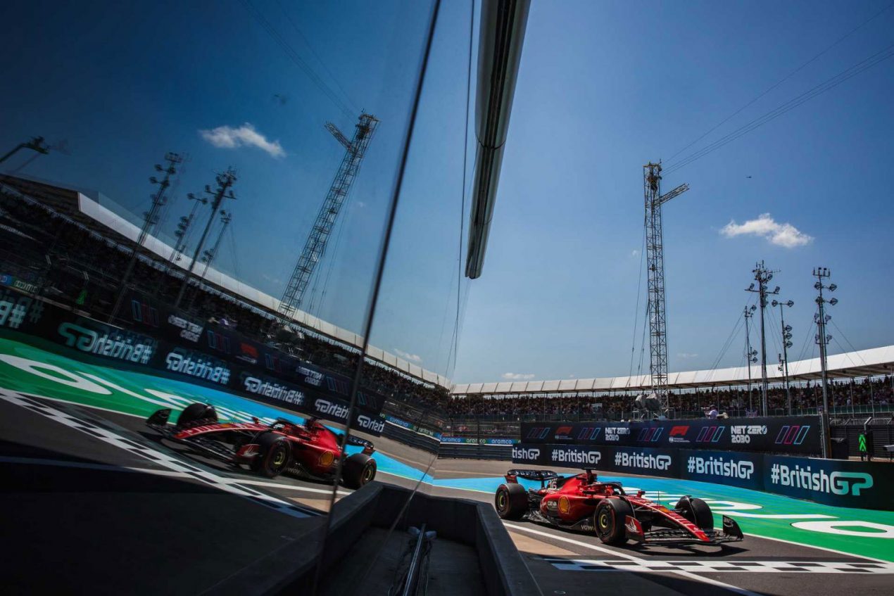 _ _ Fórmula 1 GP DE INGLATERRA 2023 S E G U N D A P R Á C T I C A L I B R E EN CADENA O T R A V E Z Verstappen hasta arriba El bicampeón holandés pasa por encima de Sainz con uno de los Ferrari.