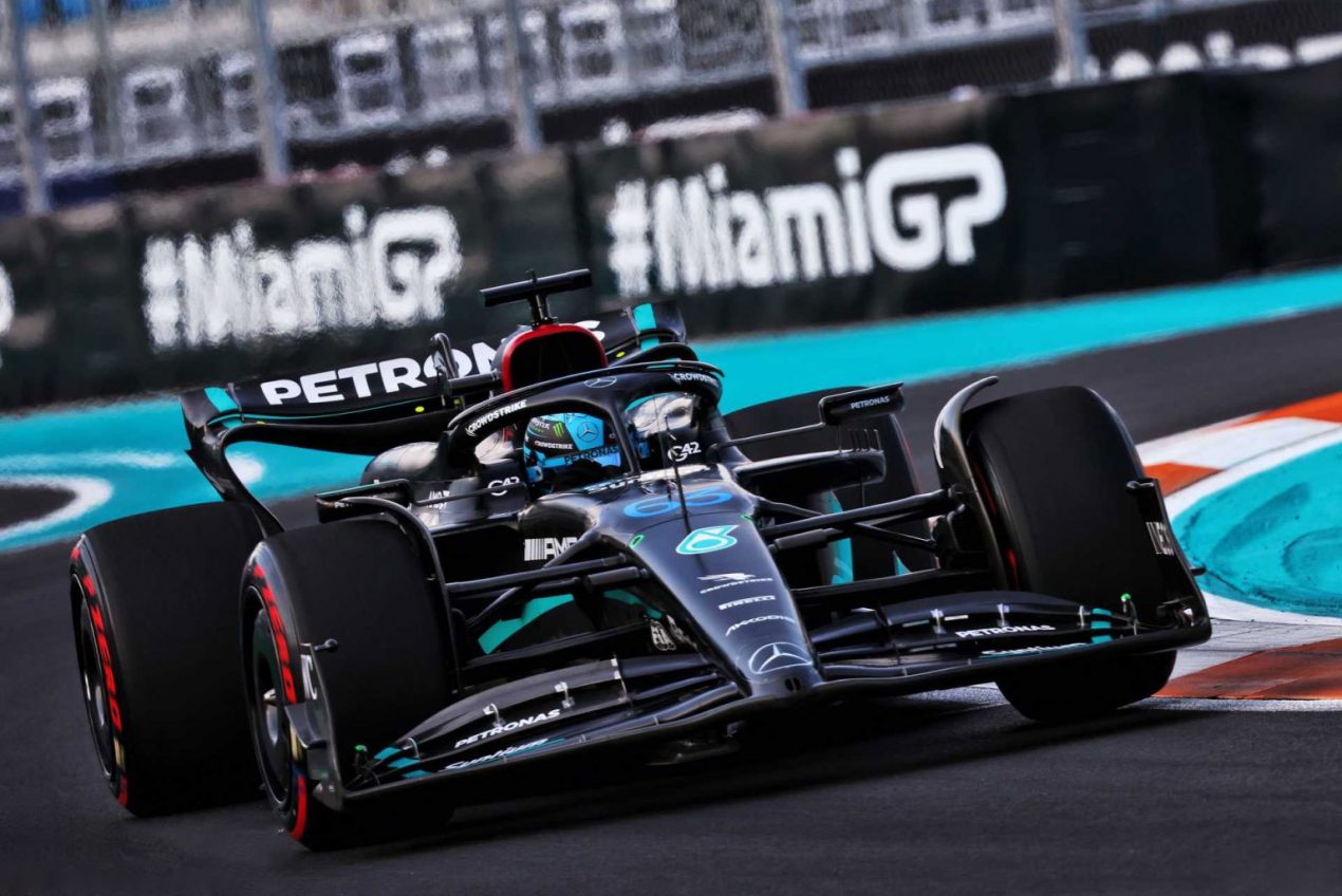 _ _ Fórmula 1 GP DE MIAMI 2023 P R I M E R A P R Á C T I C A L I B R E REACCIÓN DE LOS M E R C E D E S Con Russell y Hamilton Los más rápidos en una sesión preparatoria en la cual,